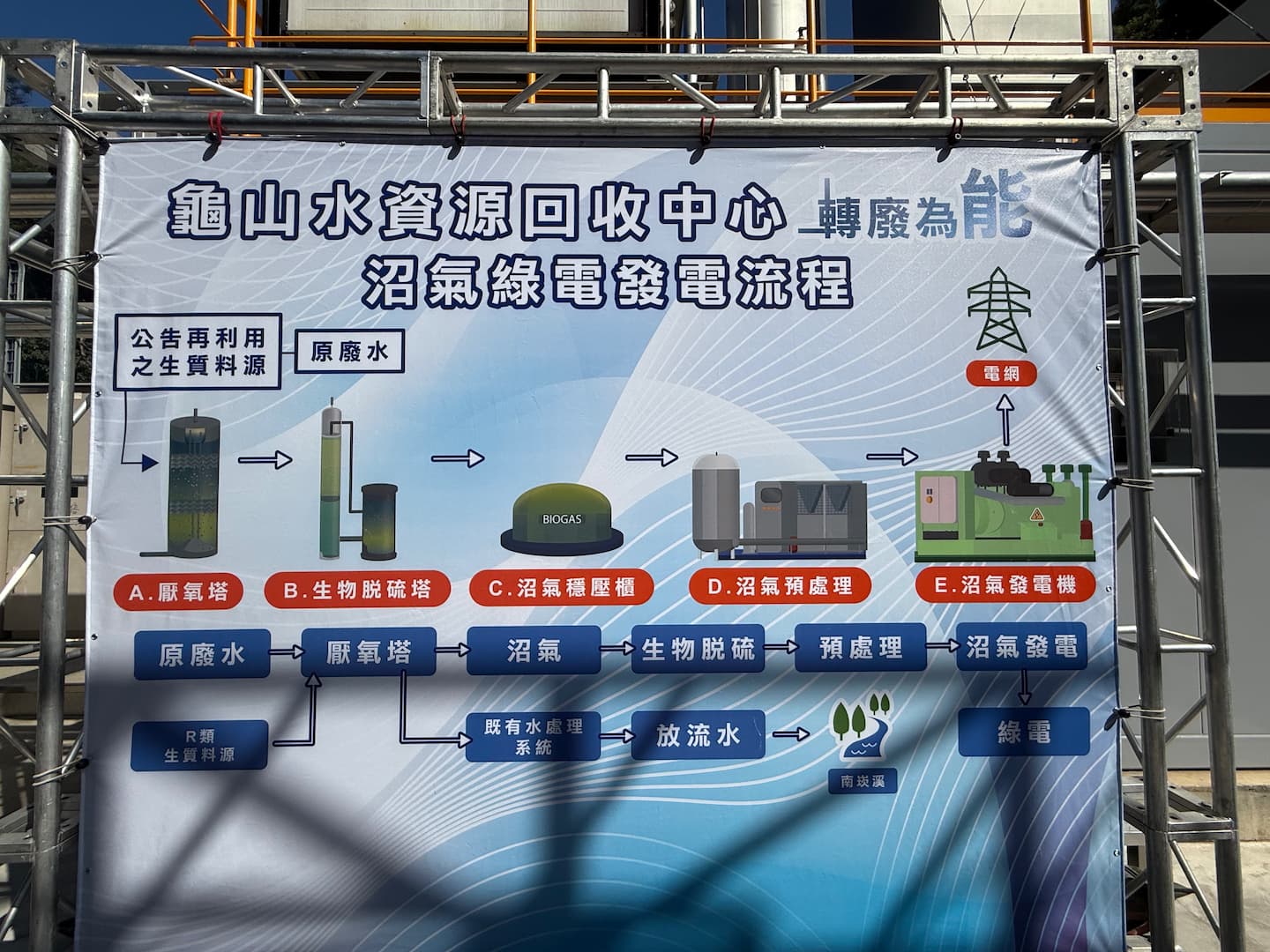 葉惠青說明,龜山水資源回收中心獲得第一型再生能源發電業核准,為台電再生能源基礎負載的首例,有別於太陽光電和風電,發電容量因素高,全年 24 小時穩定供電,因為未來能在綠電市場交易,提供規劃 RE100 的企業廠商,以較有效益的方式,達到淨零的目標。